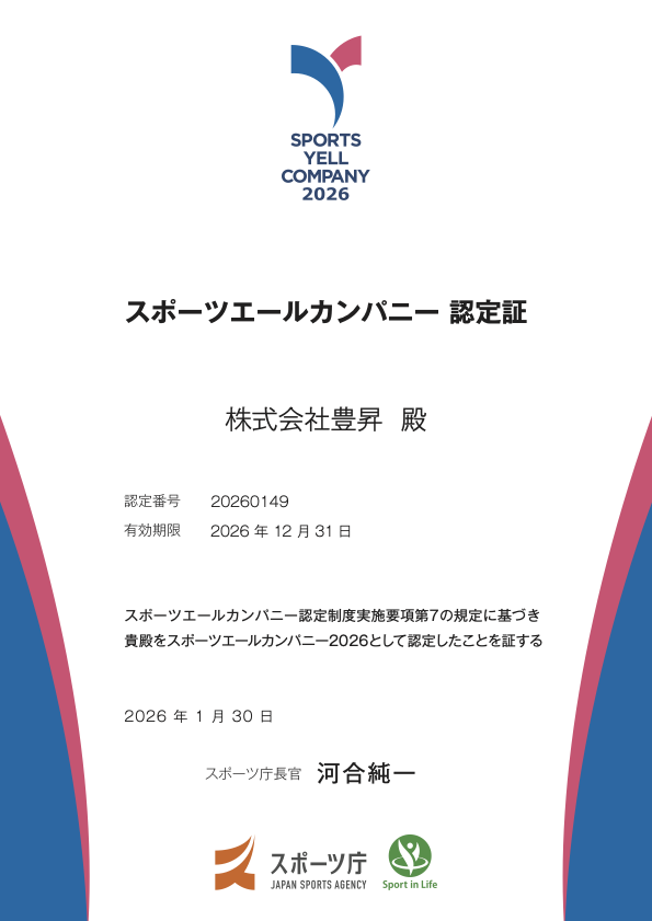 今回の認定を励みに、今後も従業員一人ひとりがいきいきと働ける環境づくりと、心身ともに健やかな働き方を支える取り組みを一層推進してまいります。