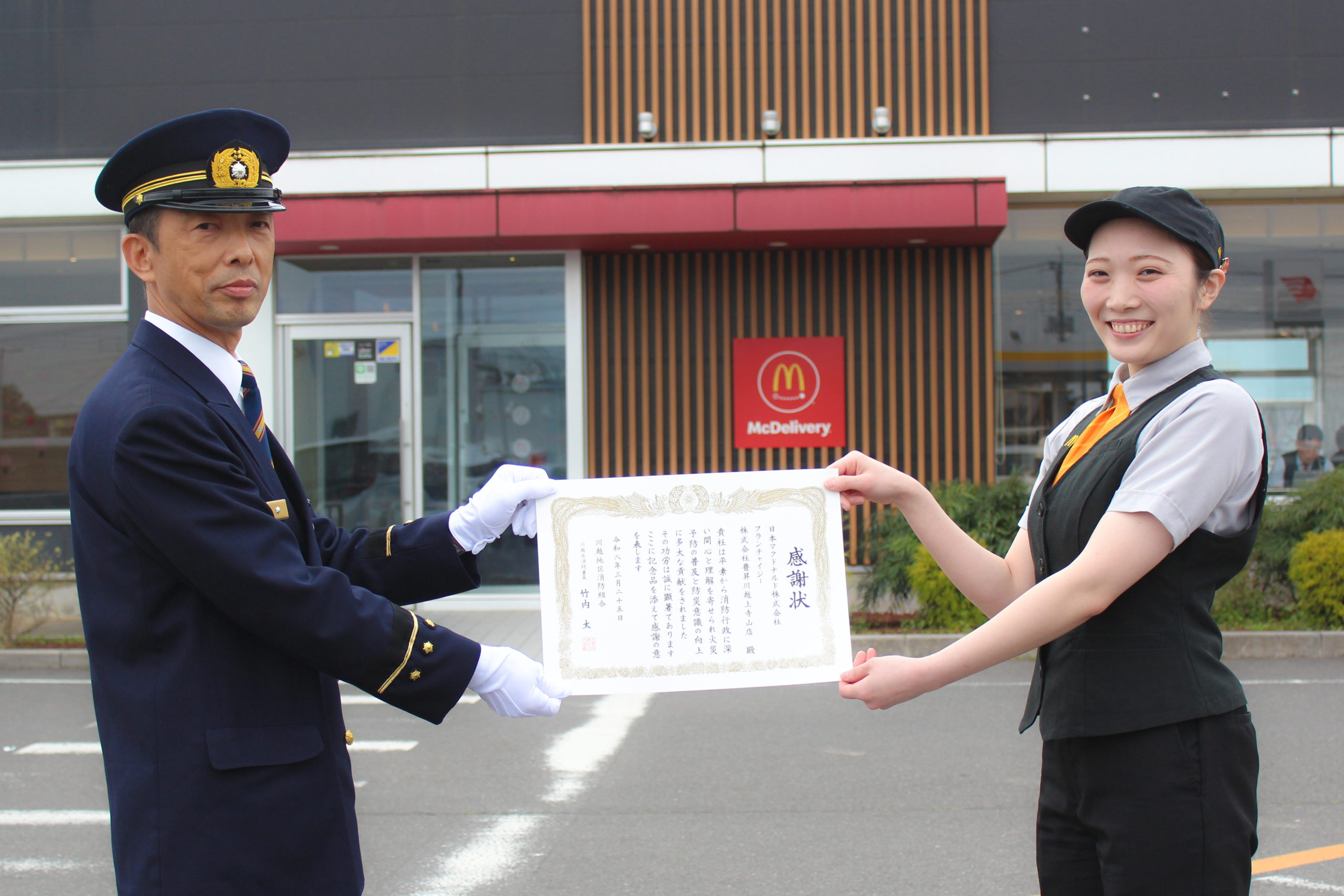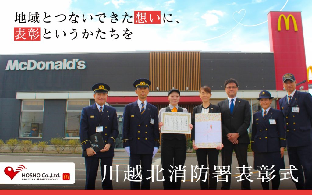 この度、マクドナルド川越上寺山店にて継続的に実施している火災予防運動イベントへの協力・支援に対し、