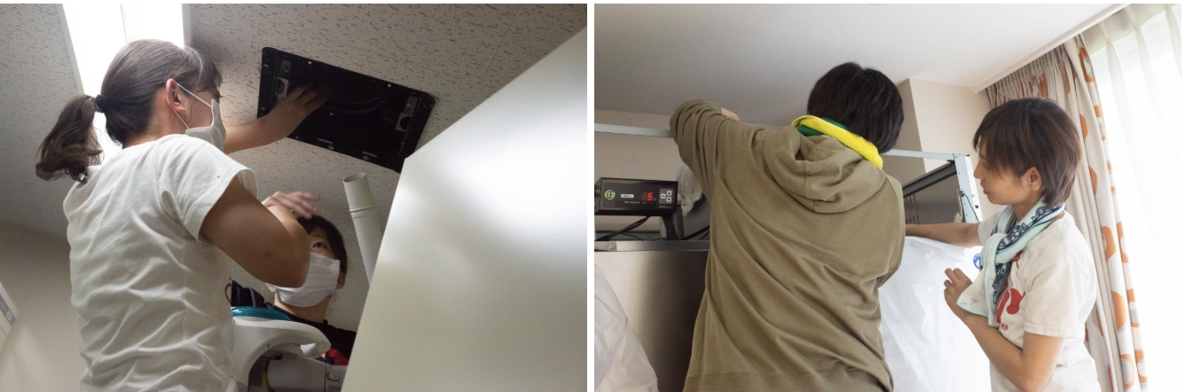 ハウス内のエアコンや換気扇も隅々まで綺麗に。