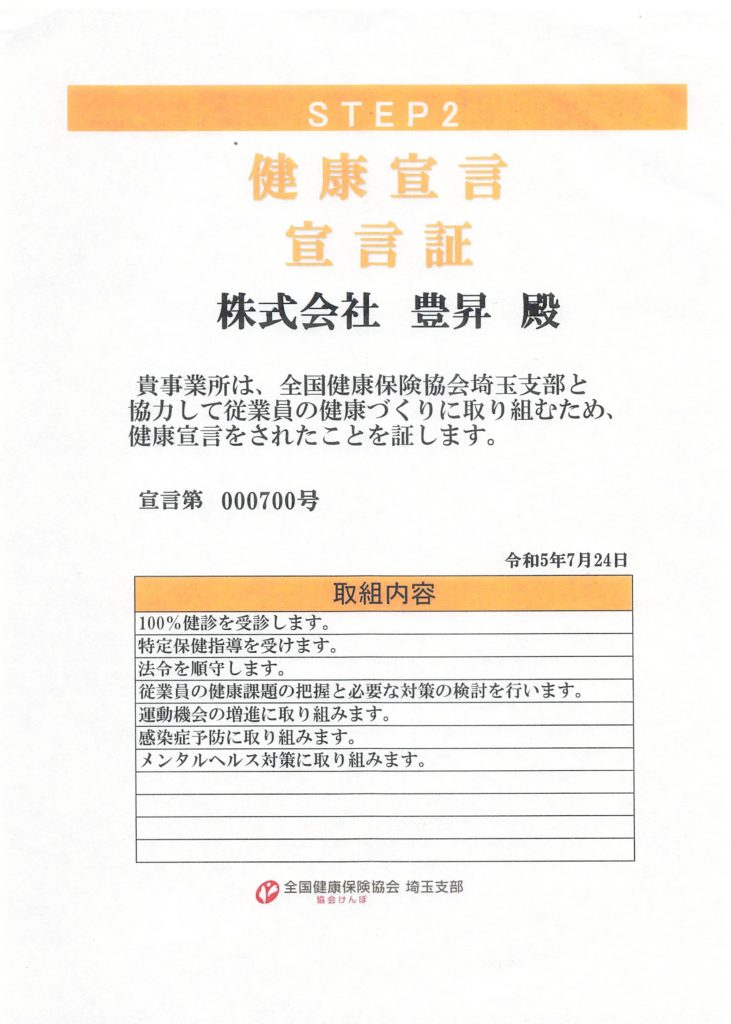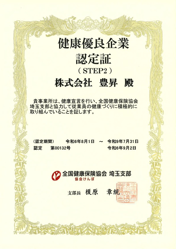 株式会社豊昇は、経済産業省が推進する「健康経営優良法人認定制度」において、