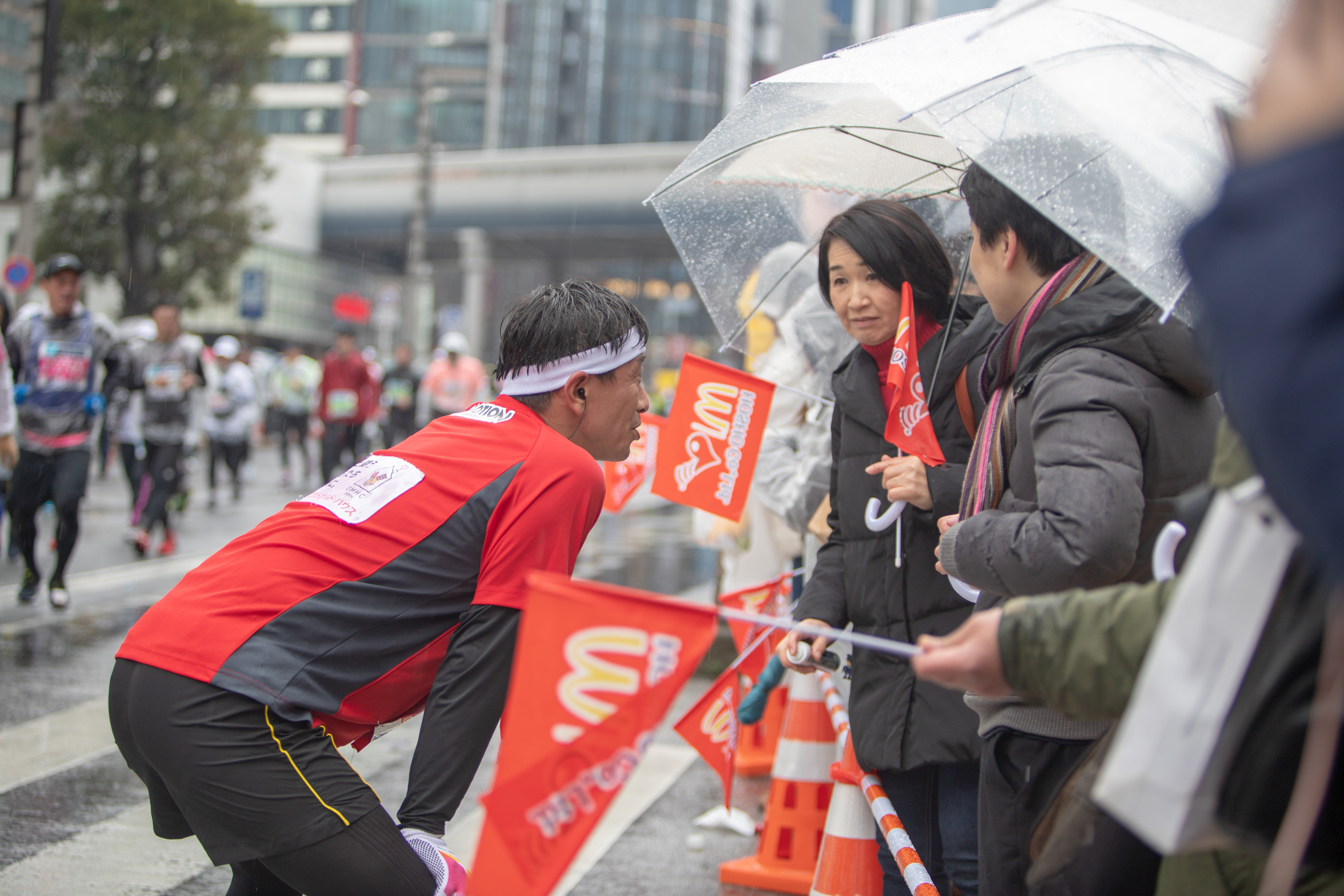 「応援団、そして沿道の皆さんからの温かい応援がなかったら、この悪天候の中で走り抜くことはできなかった。」「こうして寄付をすることで走れることが本当に幸せだと感じた。」