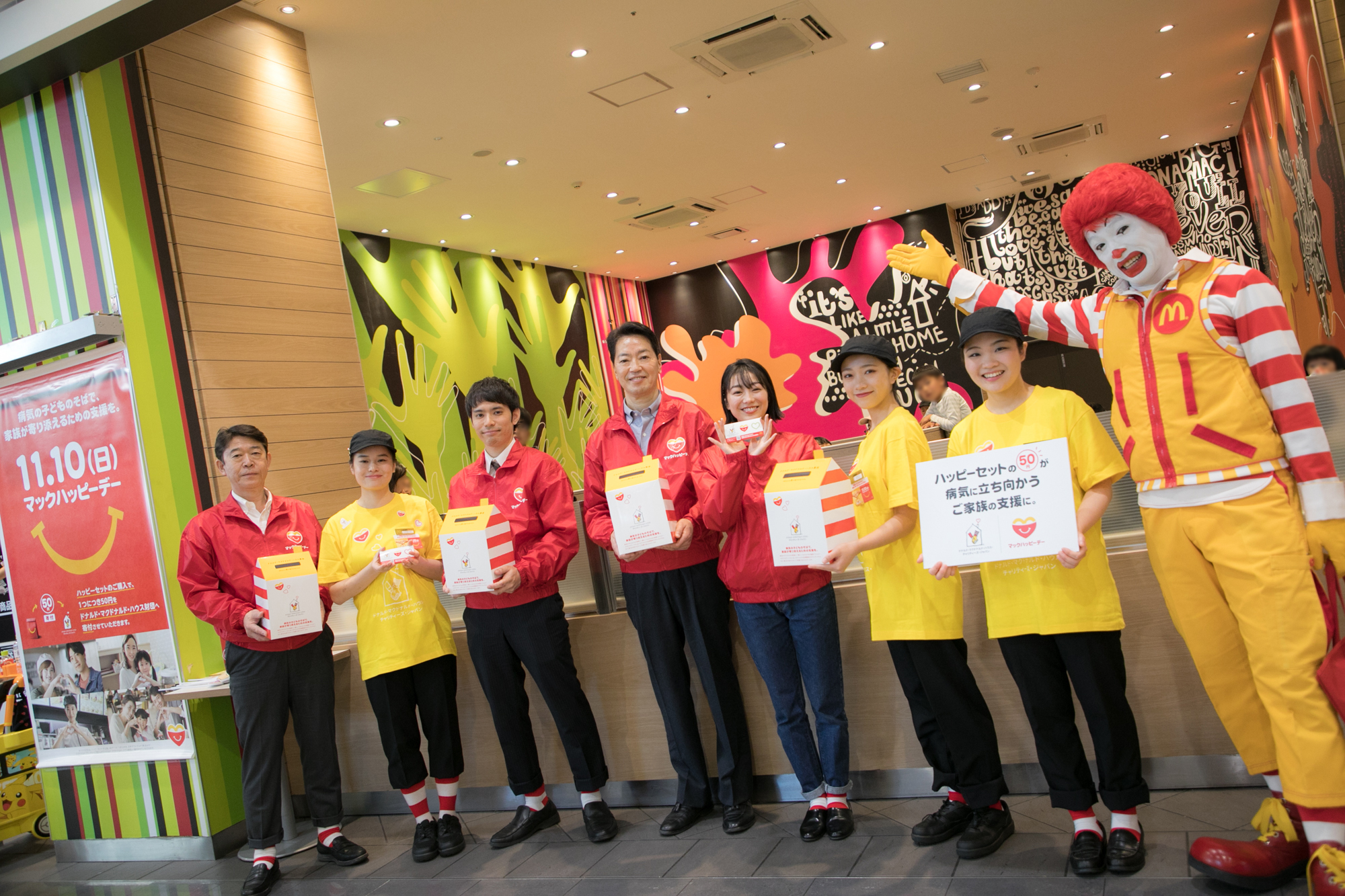 本日の募金はもちろん、マックハッピーデー当日マクドナルドでハッピーセットご購入で1つにつき、50円がドナルド・マクドナルド・ハウス財団へ寄付され、病気と闘う子どもたちとそのご家族のために役立てられます。